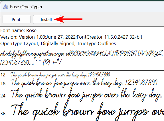 Note: If you are installing multiple font files, you can select them all, then right-click and select Install, and they will all be installed simultaneously.