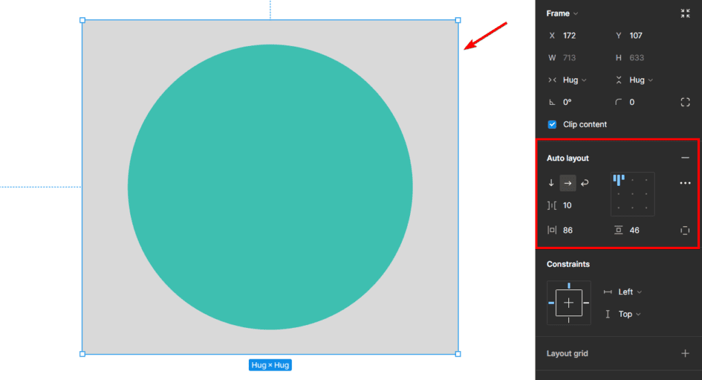 Once you enable auto layout, you will see a blue outline around the layer, indicating an auto layout frame. You will also see the auto layout properties in the Auto Layout section, where you can adjust the settings for the auto layout frame.