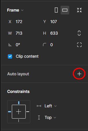 To use auto layout in Figma, select the frame, group, or components that you want to apply auto layout and open the Design panel on the right side of the screen. Under the Auto Layout section, click on the plus sign icon to add a new auto layer for the selected objects.