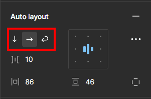 Once you have an active auto layout, you can adjust the various settings for the layout. The “Parent” has four properties you can adjust: Direction, Padding, Gap, and Alignment.