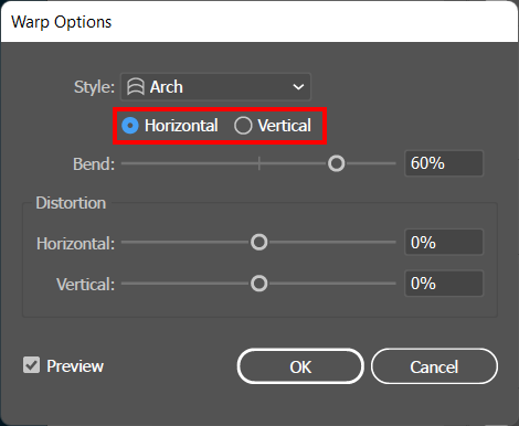 You can also change the settings by changing the warp orientation between horizontal and vertical.