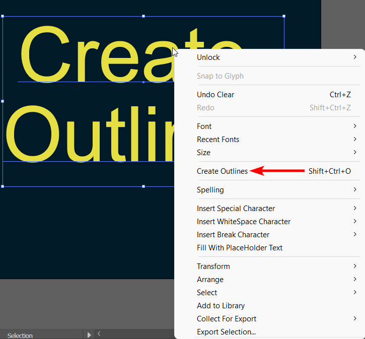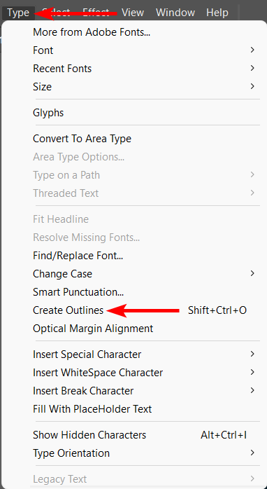 - Go to Type > Create Outlines or press Shift + Ctrl/Cmd + O