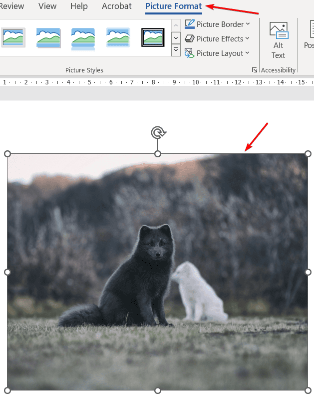 Then, select the Image and open the Picture tab from the top Menu bar.
