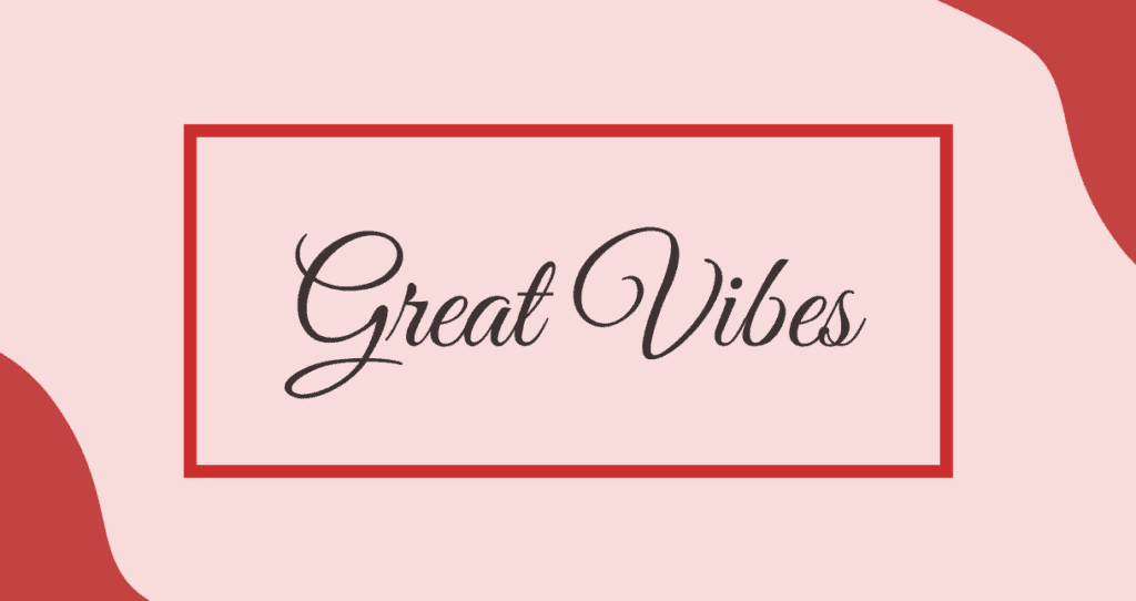 The Great Vibes font should be used as the name suggests: for any occasion that promises great vibes, fun, and playfulness. The looping capital letters create a sophisticated font with a lot of whimsy added in. This font offers an authentic cursive feel with all the letters connecting and brings a feeling of relaxation to your project.