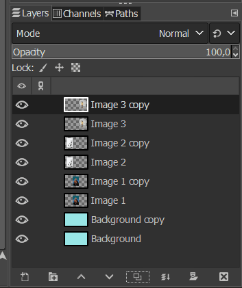 Continue duplicating each layer using the icon or the shortcut until you have a replicate of all the layers in the Layers Docker.