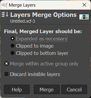 Adjust the merge settings as needed, ensuring you leave Discard invisible layers unchecked. I recommend setting it to Expanded as necessary to avoid clipping any content.