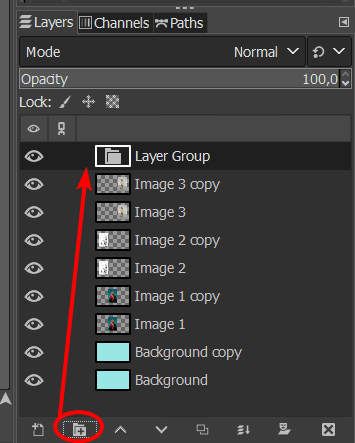 You can add the duplicates to a layer group to keep the docker organized. First, create a new group by clicking on the Create a new layer group icon.