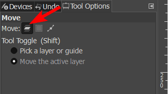 When working on complex projects, you will likely need a few different layers in GIMP, and you will need to know how to move the different layers. You must activate the Move Tool by clicking it in the toolbar or pressing M. You can then click and move your layer around the canvas.