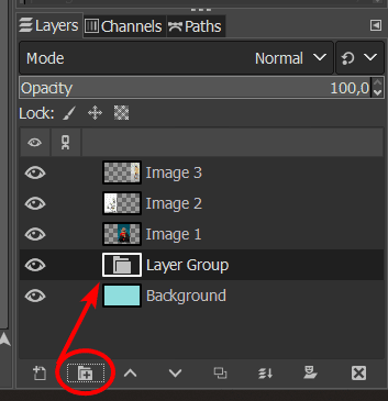 First, you must create a new layer group to add the layers. You can create a new layer group by clicking on the Create a new layer group icon at the bottom of the Layers Docker.
