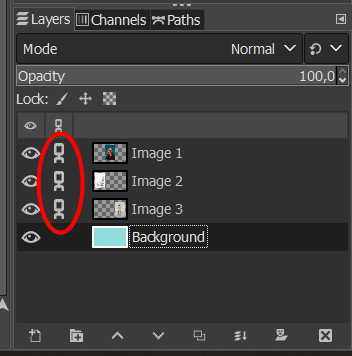 The other way to scale multiple layers in GIMP is to link the layers before transforming them. This method works by locking layers together, meaning any changes, such as moving, scaling, and rotating, will be applied to all the linked layers.