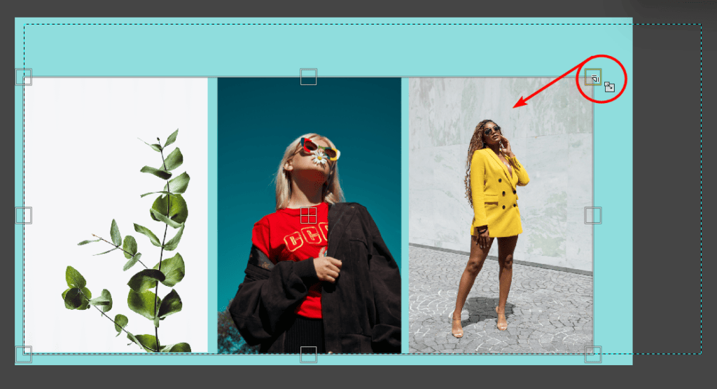 You can now click and drag any corner handles to scale the layers up or down, depending on how you want to resize them.