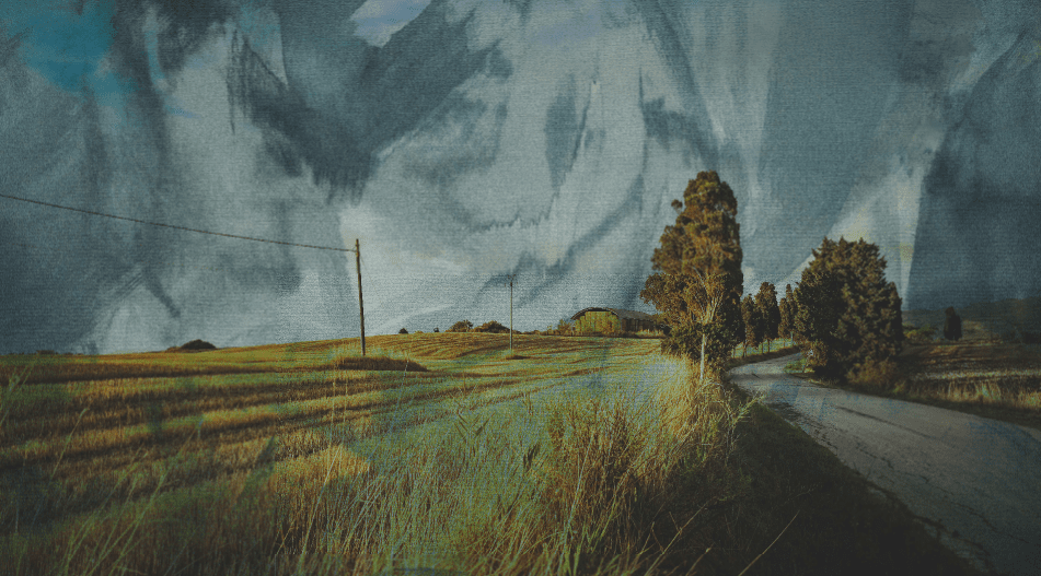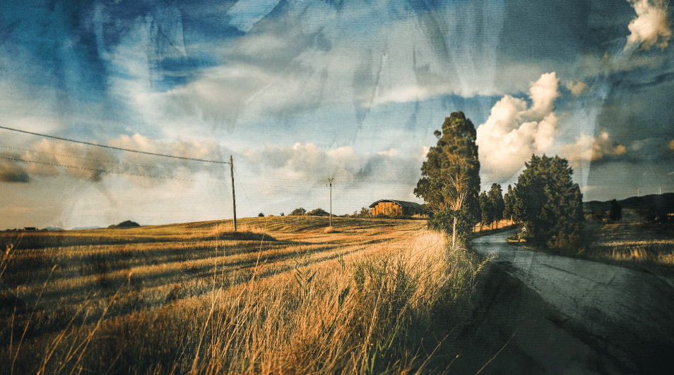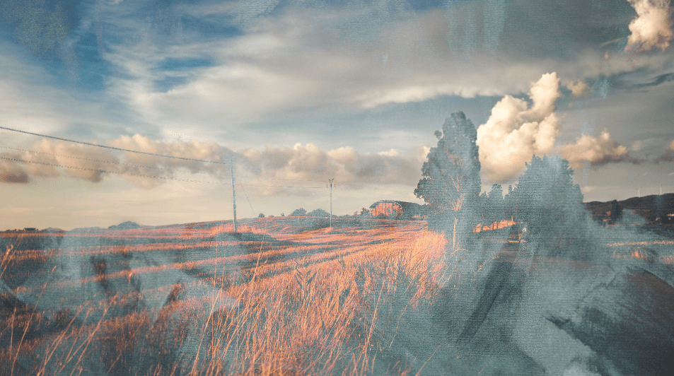 To add a blending mode to a layer, you need to have at least two layers that contain content in the Layers docker. You can use any layers, but for this example, I will use two image layers to show how you can blend photos to create unique effects. I will use these two images and blend the grainy image into the landscape scene.
