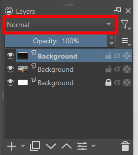 To change the Blending Mode for an entire layer, use the drop-down menu found in the Layers docker next to Normal.