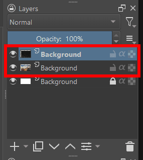 There are several Blending Modes available in Krita. While I can’t explain them all, here are a few of the most commonly used blend modes and how they interact with the layer or brush below.