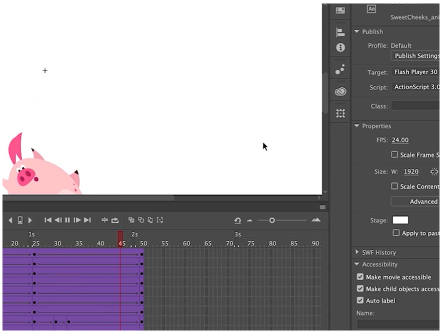 Adobe Animate offers more animation capabilities than Krita, but it still doesn’t quite reach a top-tier level for expert animators. You can easily create interactive banners and buttons for websites and use an extensive array of premade assets for your work.