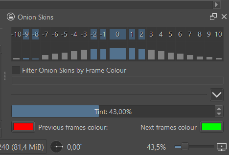 The onion skin docker helps control how you see the different frames placed on top of each other so you can see a complete view of all the frames and how they work together. You can use the onion skin docker to change the skin's look, allowing you to see previous frames more clearly.