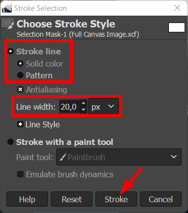 You can also play around with the other settings, but I suggest focusing on the Line Width. Adjust the width to how thick you want your border. Then click Stroke.