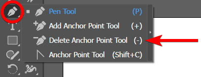 To use the dedicated tool, select the Delete Anchor Point Tool from the Pen Tool fly-out menu or use the shortcut - (minus sign) on Windows and Mac.