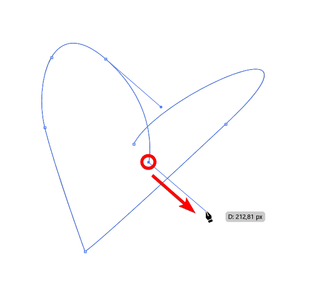If you want to add an anchor point to the end of the path to extend the path further, you must click on the last anchor point that ended the path. As you drag the mouse away from the anchor, you will see a new segment line appear.