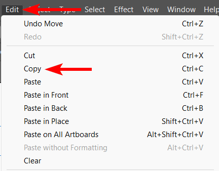 Then, copy the elements by going to Edit > Copy or using the shortcut Control + C on Windows or Command + C on Mac.