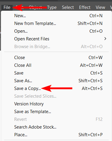 You first need to save your Illustrator document as a PDF. To do this, add all the elements you need to the document. Then, go to File > Save a Copy or use the shortcut Alt + Control + S on Windows or Option + Command + S on Mac.