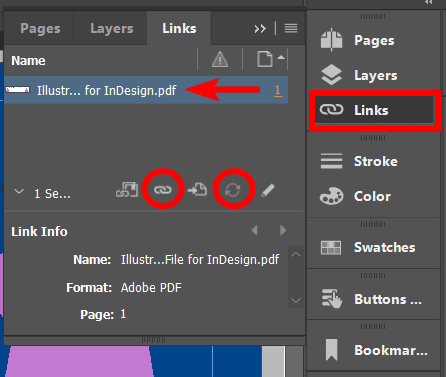 The downside to this method is that the file is added as a link in the InDesign file. This means that if you change or move the PDF file, you will need to update the link in InDesign. You can update links by opening the Links panel and clicking Relink or Update Link from the icons at the bottom.