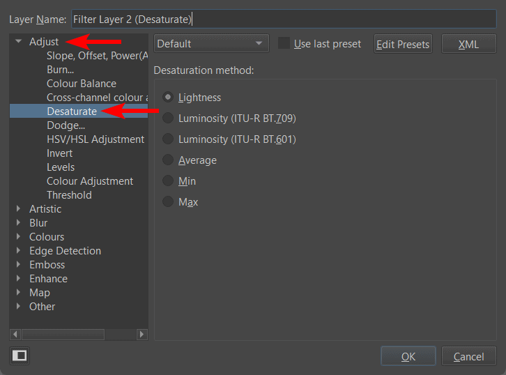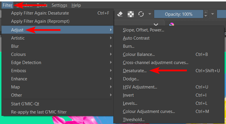 - Select Desaturate From the Filters Menu