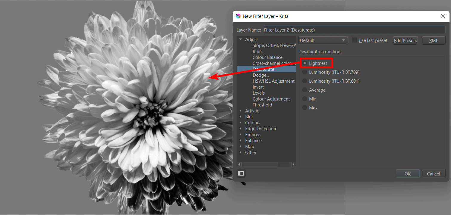 How to Make an Image Black and White in Krita