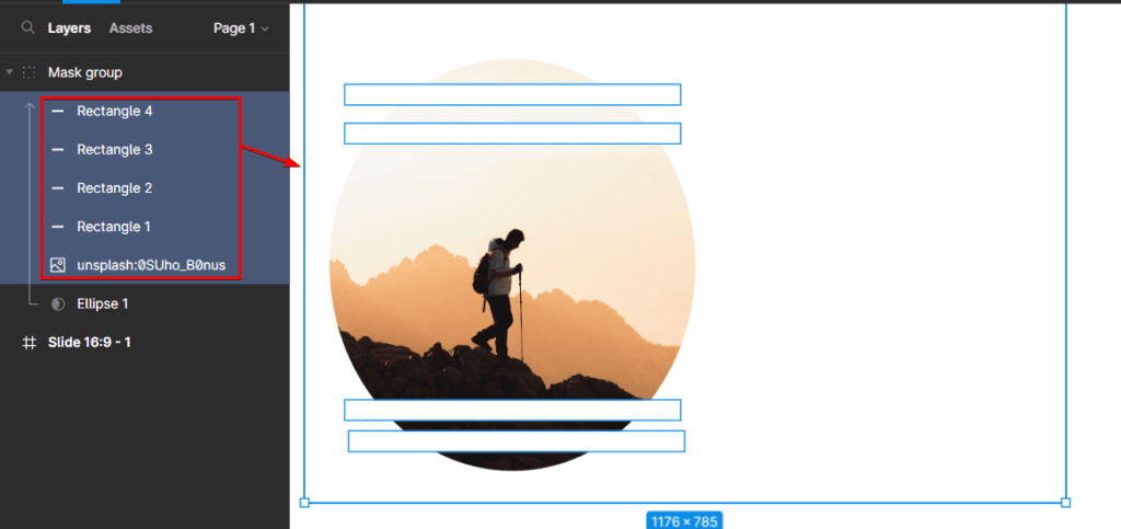 You can also use multiple layers to add creative elements to the mask, such as additional shapes that will remain partially visible within the mask. Here, I added rectangles into the ellipse to add a creative touch to the image.