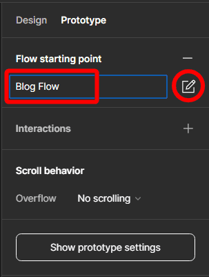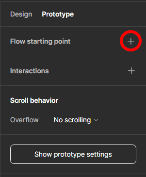 Next, click on the plus sign next to the Flow Starting Point section. You can also create a starting point by right-clicking on the frame and selecting Add Starting Point or duplicating a frame that is already a starting point.
