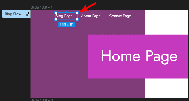 A starting point is created when you add a connection between two frames, which starts the flow. This becomes a user's journey. For instance, the Blog menu item is the starting point, and the user’s flow is when they click it and end up on the website’s blog page.