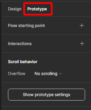 Then, open the Prototype Panel on the right-hand side of the workspace by clicking on it.