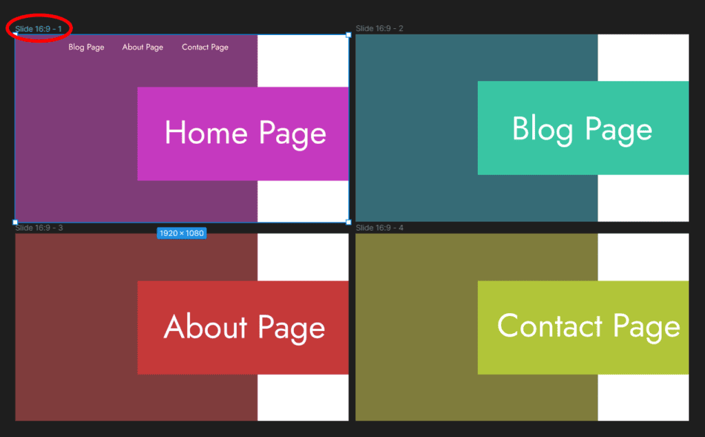To demonstrate, I have created a few frames as pages for a website and clearly marked the pages for easy viewing.
