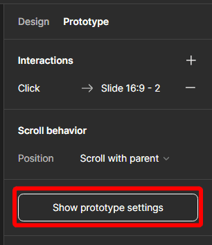 Click on Show Prototype Settings in the Prototype Panel.