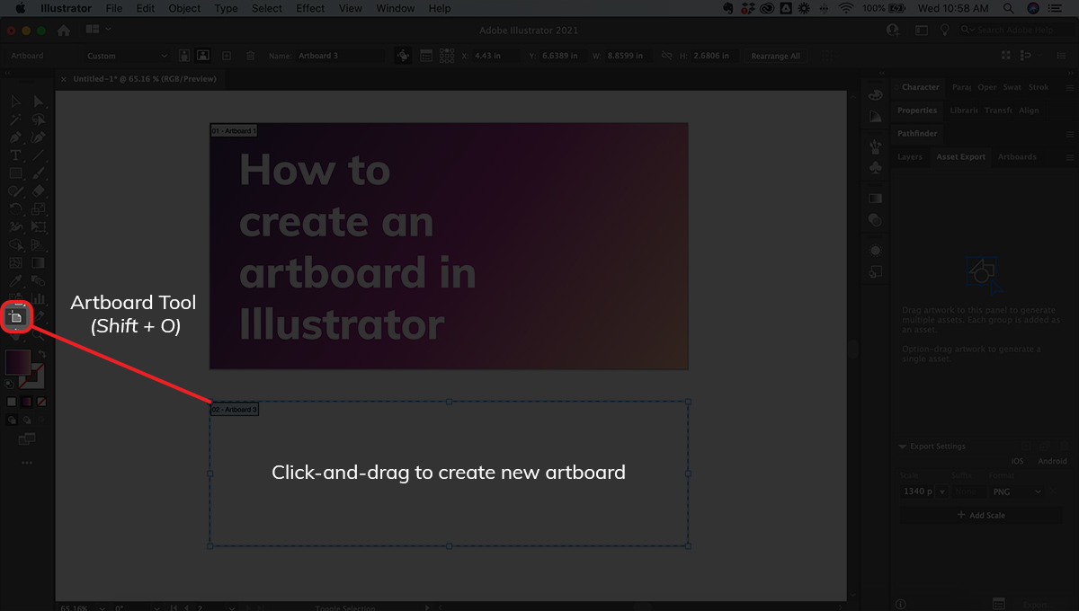 - With the Artboard Tool, click-and-drag to create a new artboard in the canvas area
