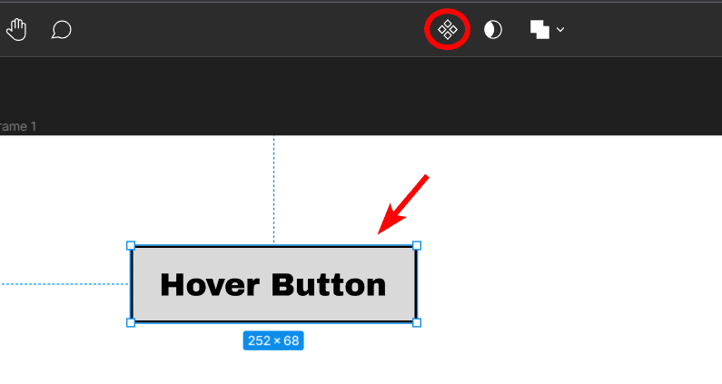 Once the elements are grouped, you can convert them to a component, which allows you to add a variant and interactions. To convert the object to a component, select it and click on the Component icon in the top settings bar or use the shortcut Control + Alt + K on Windows or Command + Option + K on Mac.