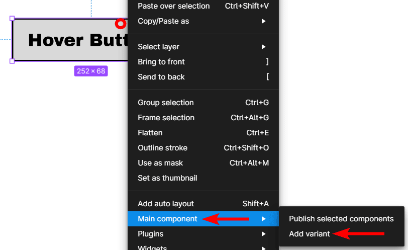Next, add a variant to the component, which will show how you want the element to look when a user hovers over it. Before changing the style, you need to add the variant linked to the original element.