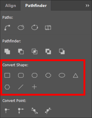In the Pathfinder panel, select one of the shapes under Convert Shape.