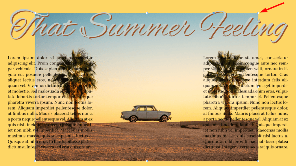 You now have the image and the container on the page. Activate the Selection Tool from the toolbar or by pressing V.