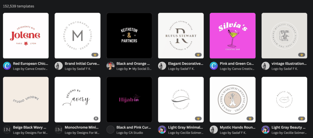 Lastly, you can also use a template to curve text in Canva. On the Canva homepage, go to the Template options and type “Curved text logo” in the search bar. You will find several logos that include curved text in them.