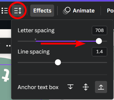Then, move the Letter Spacing slider to the right to increase the spaces between each letter.