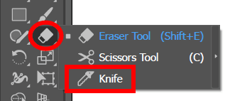 Then, activate the Knife Tool, which is located in the Eraser Tool fly-out menu.