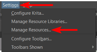 If you want to access the resource folder through Krita, use the same menu path you used to restore the deleted resources. Go to Settings > Manage Resources.