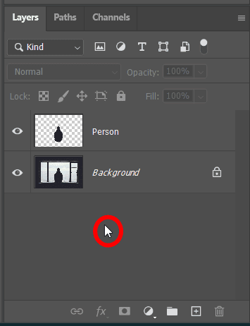 For instance, I’ve selected the person in this Person looking out through a window image from Unsplash. I copied the selection onto a new layer. Now I need to deselect it.