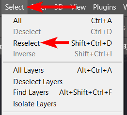 To reselect a selection you accidentally deselected, go to the Select menu and click on Reselect or use the shortcut Shift + Control + D on Windows or Shift + Command + D on Mac.