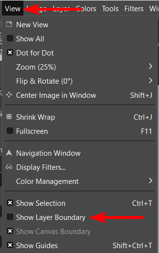 You can turn off this boundary line so that it doesn’t show on the canvas if you’d like. To turn off the layer boundary selection, go to View > Show Layer Boundary.