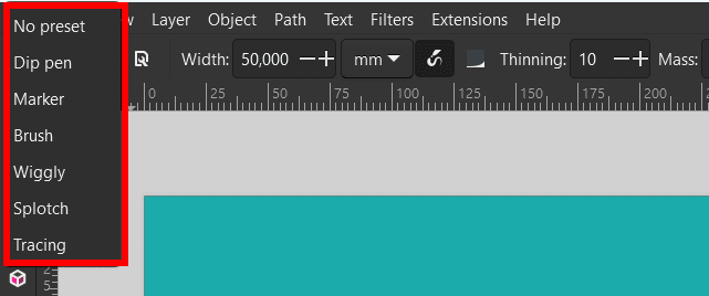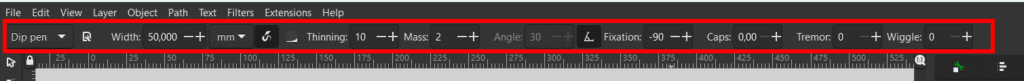 You can go through the rest of the settings to change the width, thinning, mass settings, and more. You can’t draw a perfectly straight line with this tool.