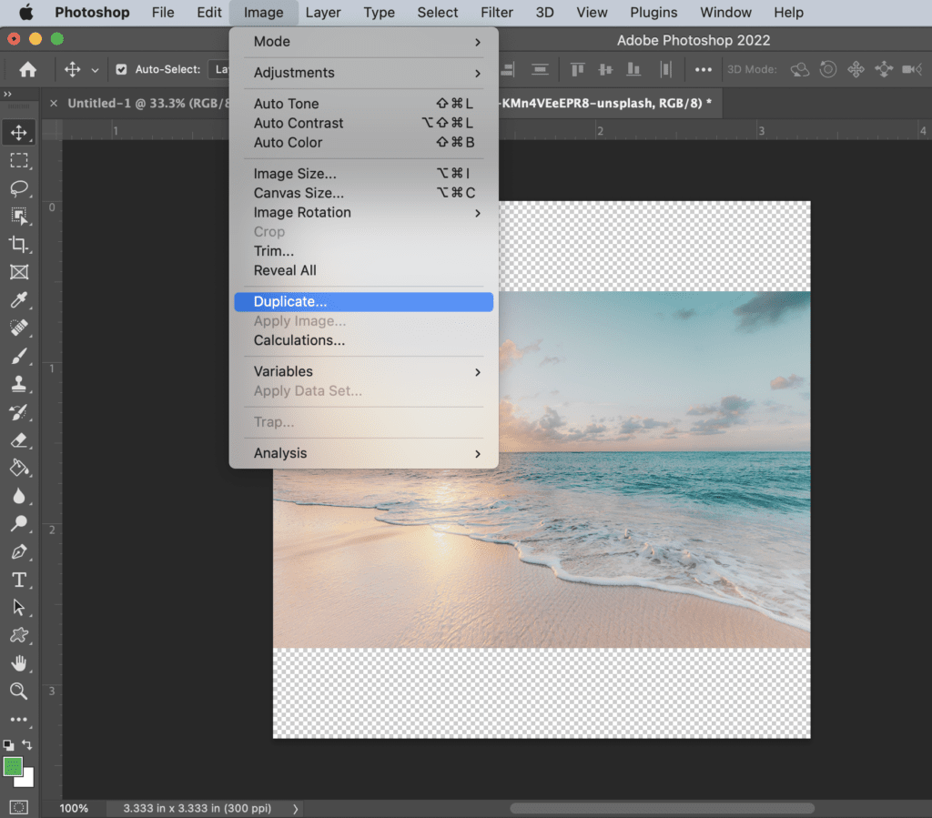 The easiest shortcut to duplicating an image is the Copy and Paste method where you simply hit Command + C then Command + V (Mac) or Ctrl + C then Ctrl + V (PC). This will create a duplicate of the image within the project in a new layer.