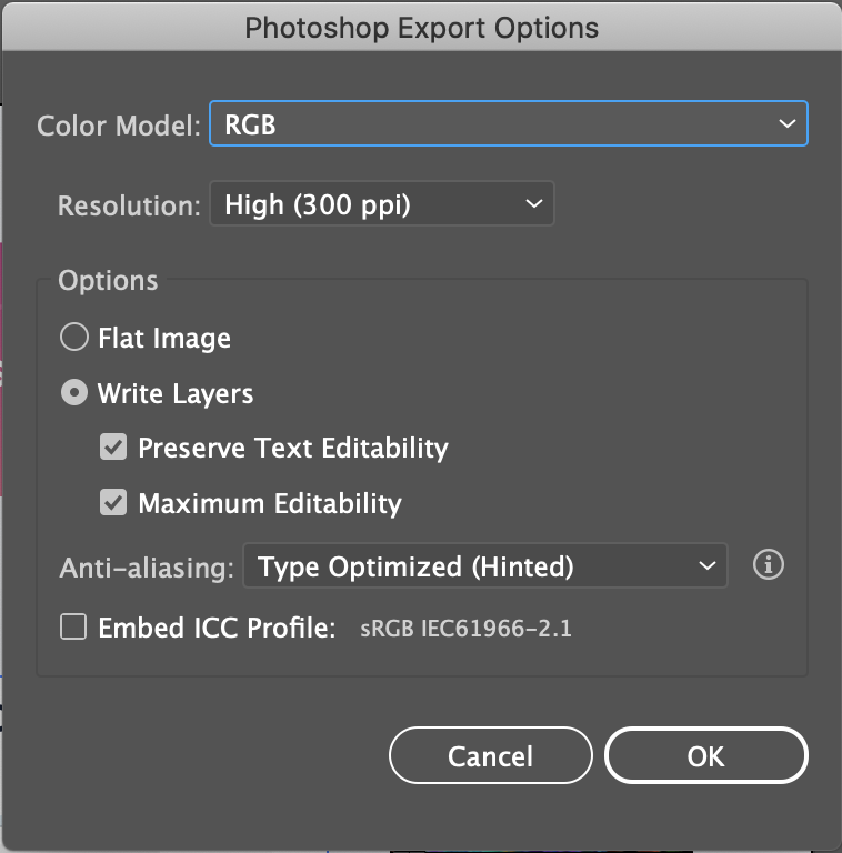 That's it! The PSD file should open in Photoshop with maximum editing capabilities, including editable text.