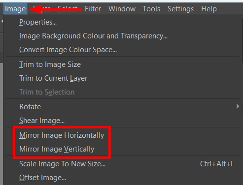 Click on the Image menu, then select Mirror Image Horizontally or Mirror Image Vertically.